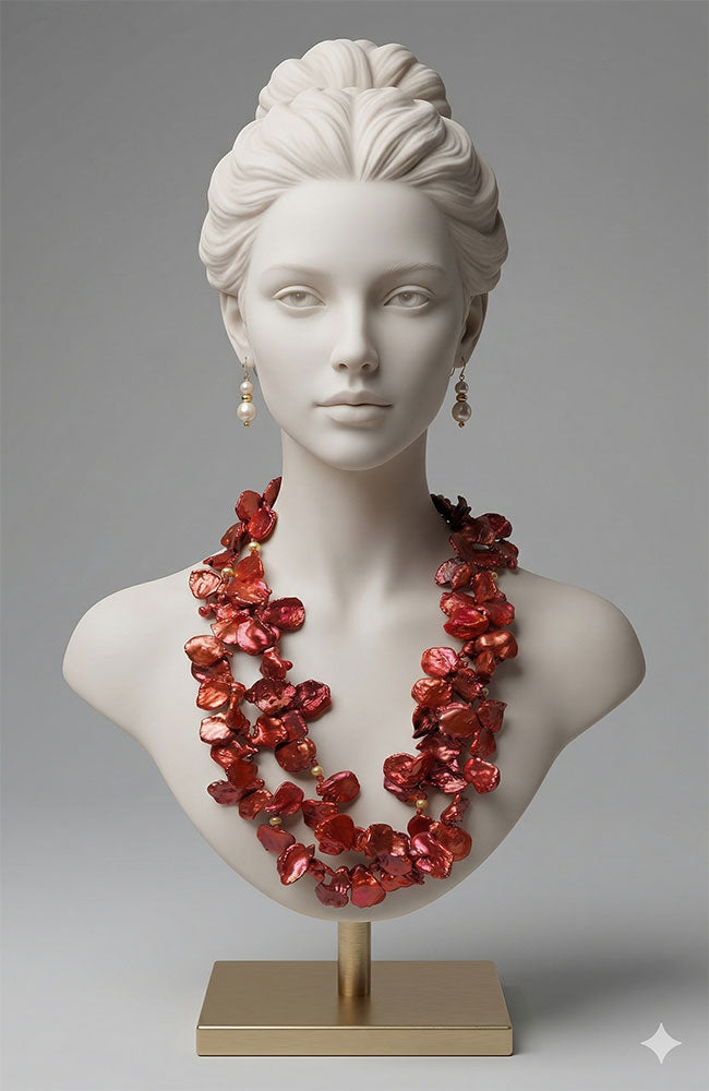 Dbl Strand Pimento Pearl Necklace