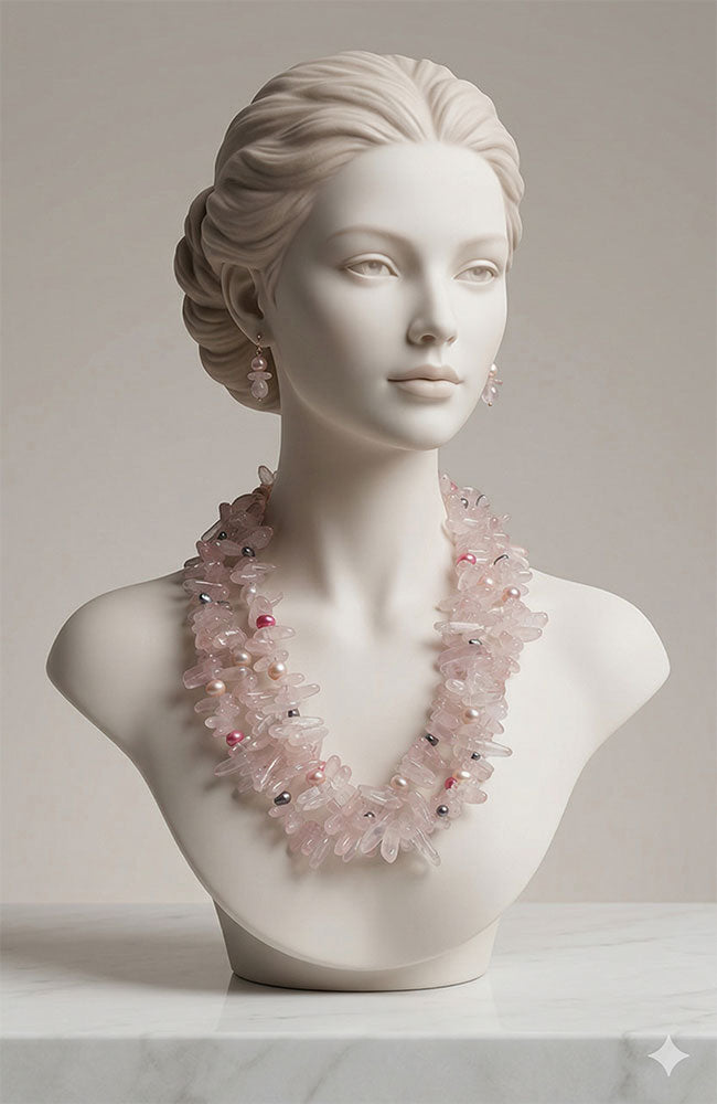3 Strand Rose Quartz Necklace