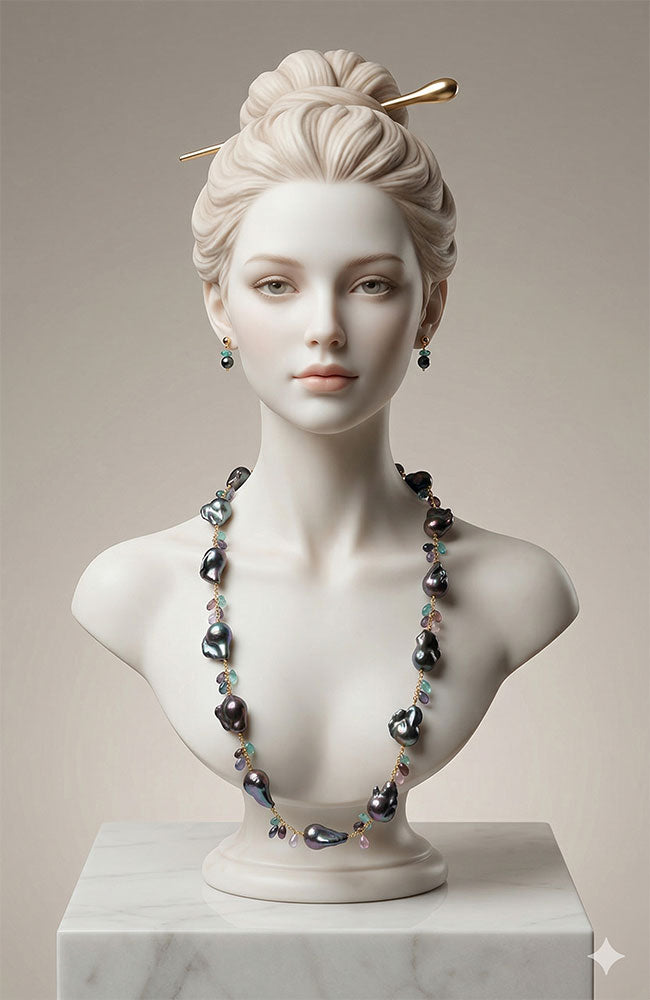 Natural Blue Grey Baroque Pearl Necklace