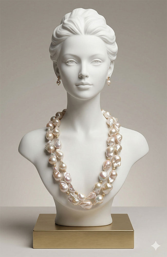 2 Strand Whtie Baroque Pearl Necklace
