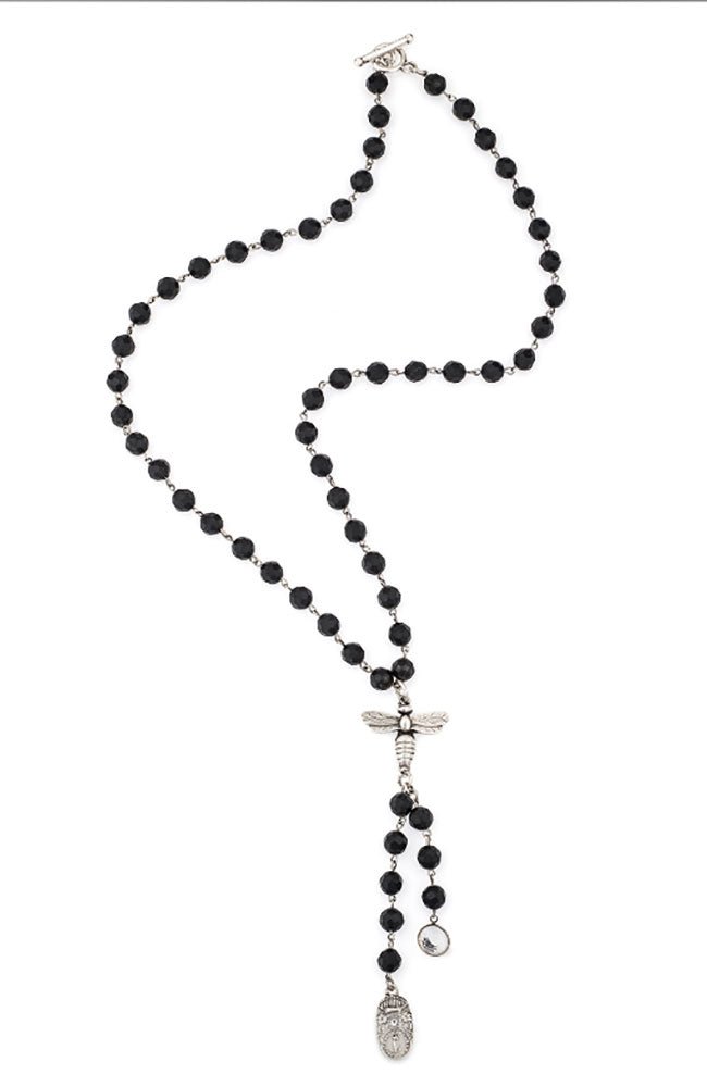 French Kande 26" Graphite Crystal Chain Meil Pendant