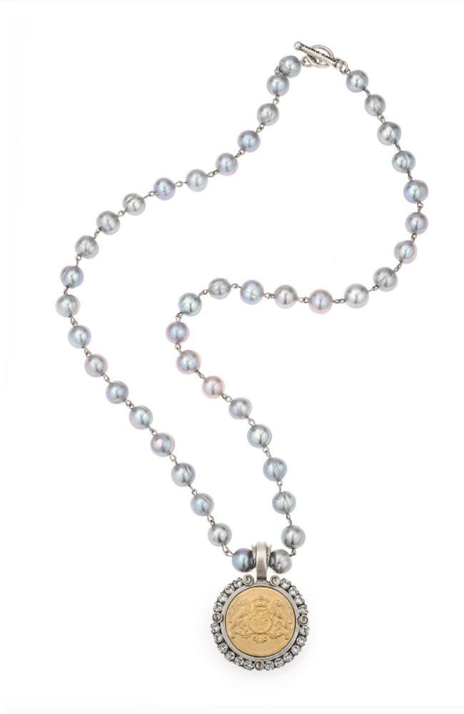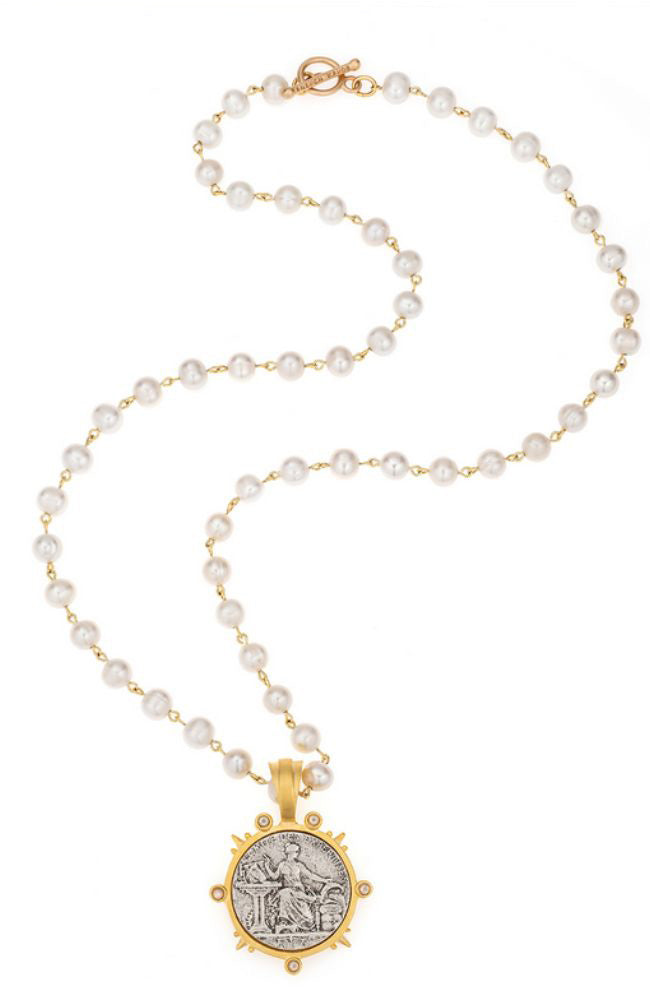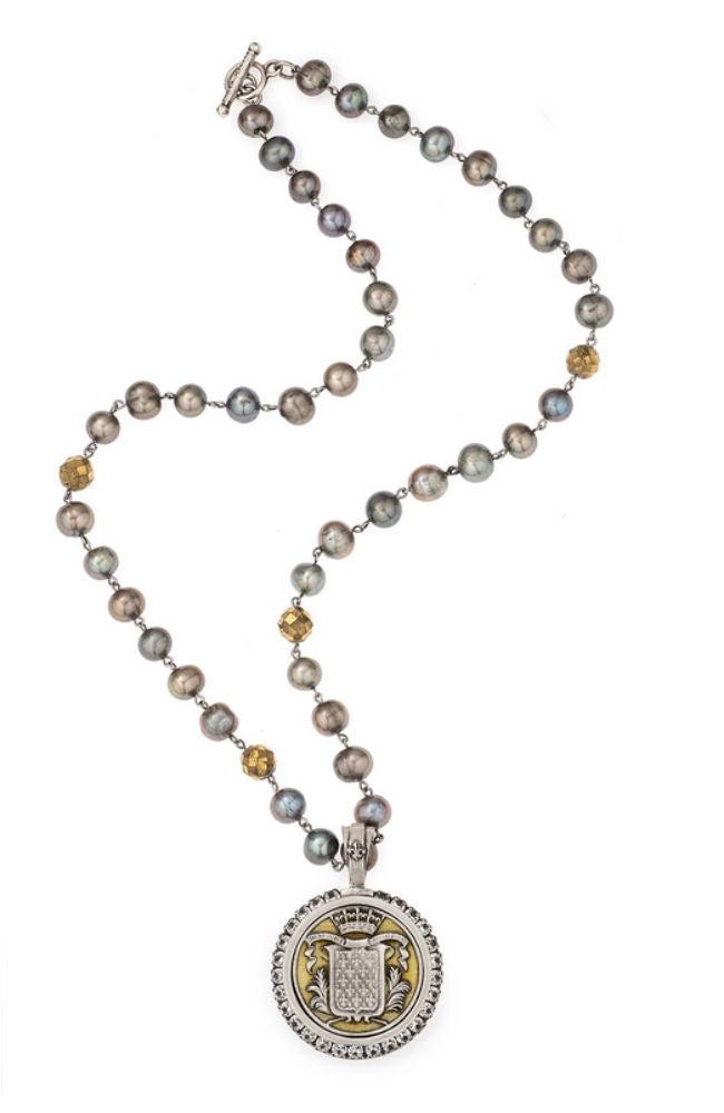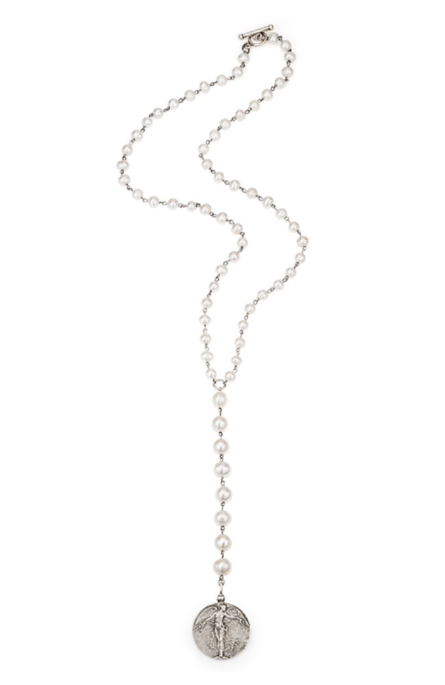 French Kande 29.5" Silver Freshwater Pearl with Daalder Medallion