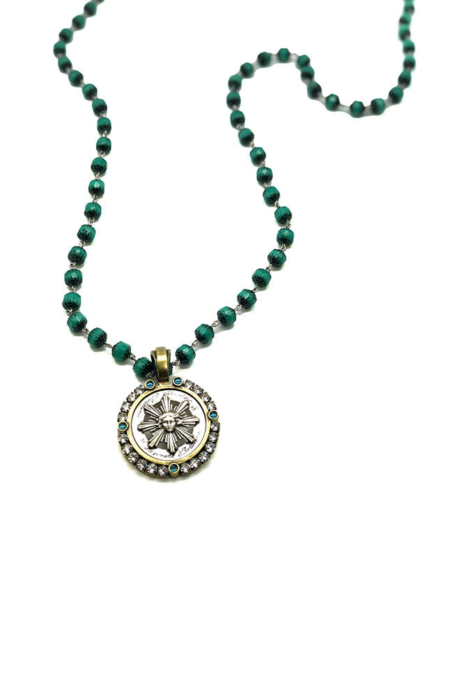 French Kande 28" Turquoise Crystal Necklace Laren Medallion