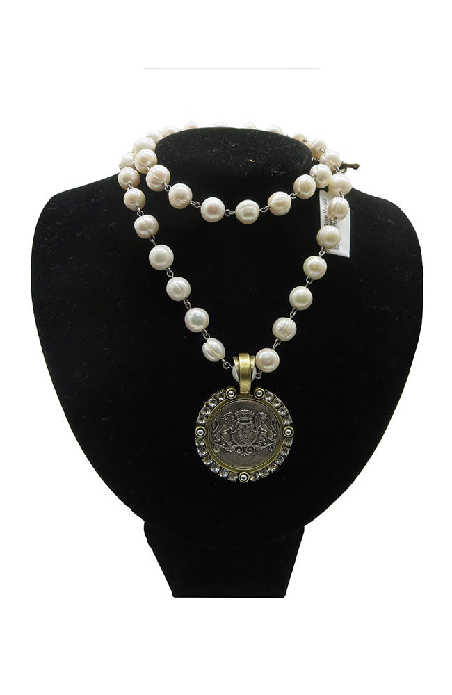 French Kande 29" FW Pearl Necklace Medallion