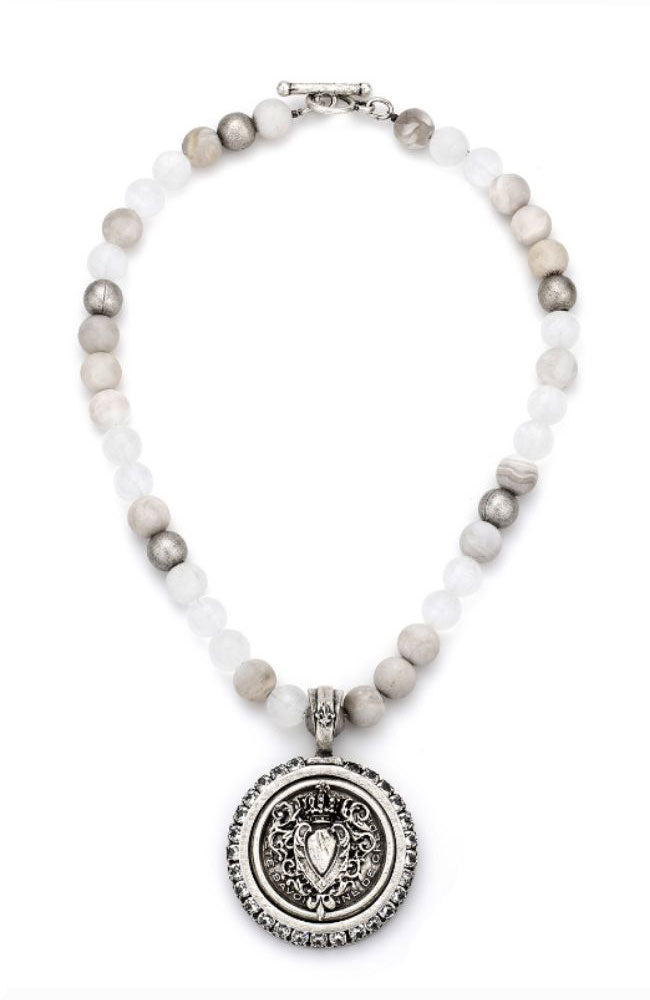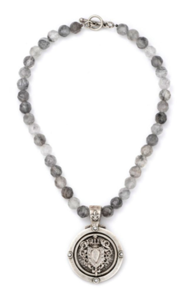 French Kande 17" Faceted Cloud Quartz with Centennial Heart Stack