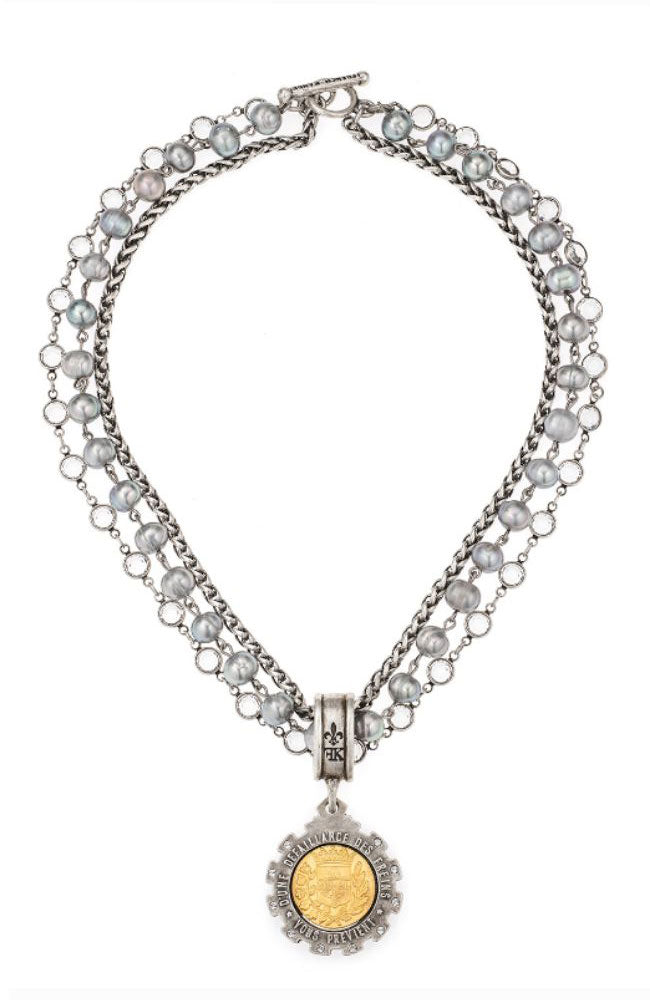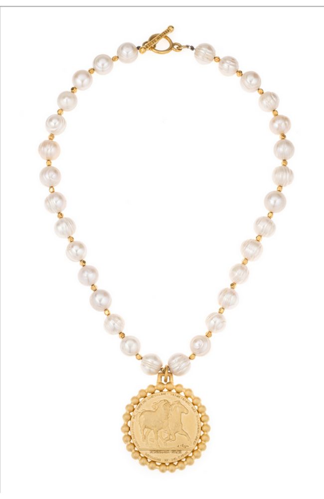French Kande 17" Freshwater Pearls with Les Cheveaux Medallion