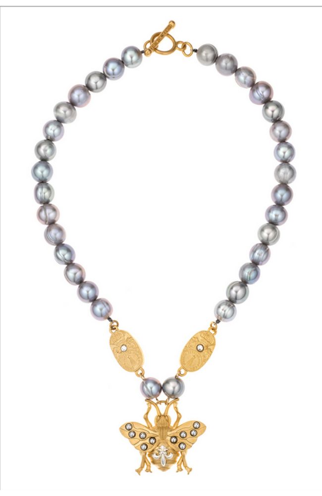 French Kande 17" Freshwater Pearl necklace with Large Bee