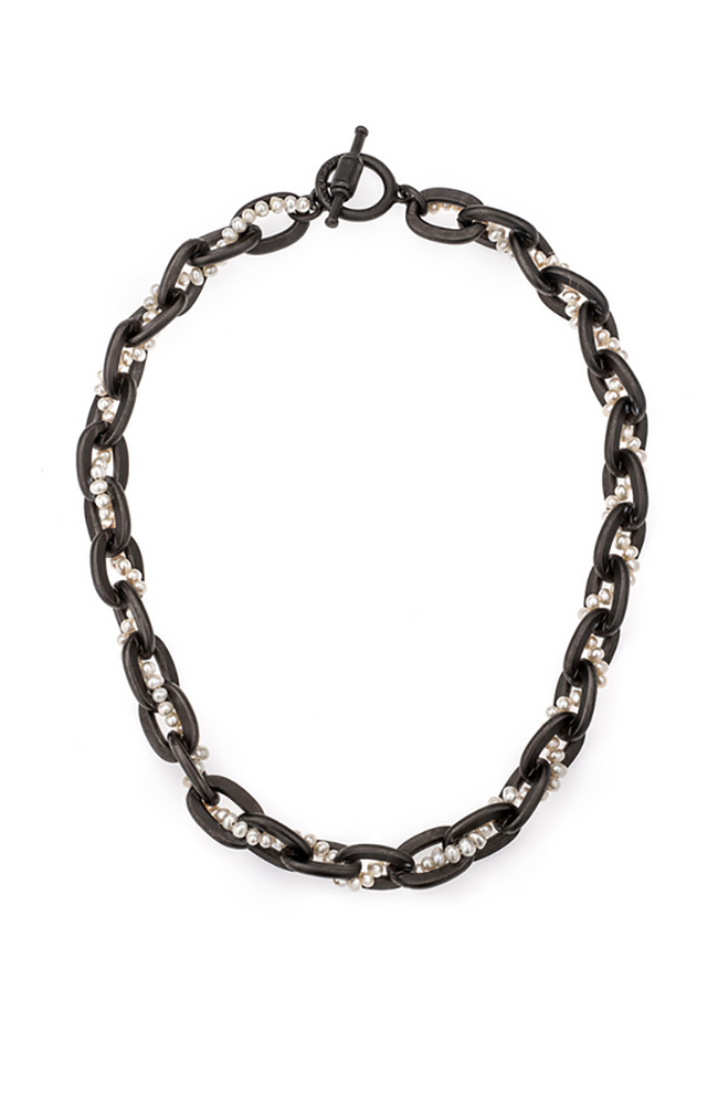 French Kande 17" Graphite Lourdes Chain with Pearls