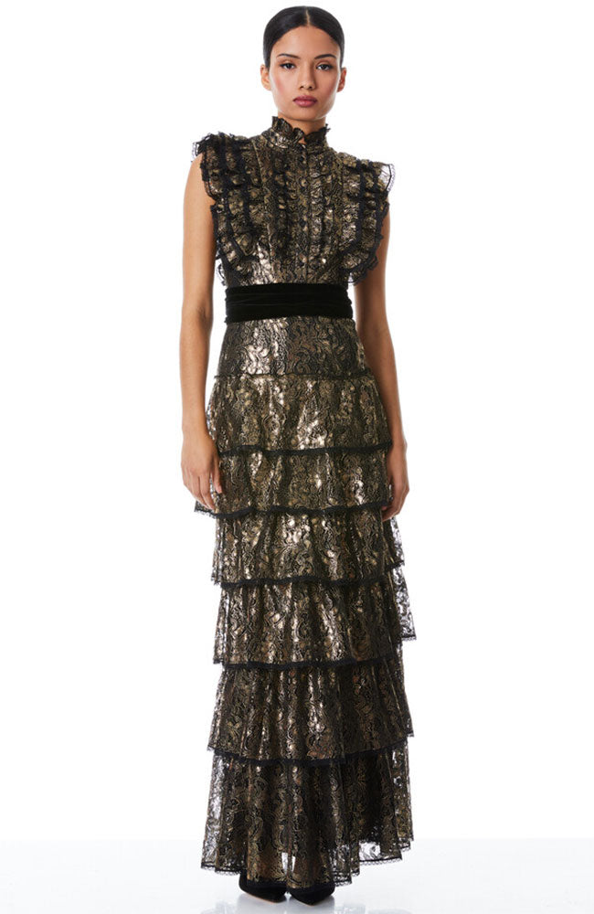 Alice & Olivia Tahara Ruffle Sleeve Maxi Dress