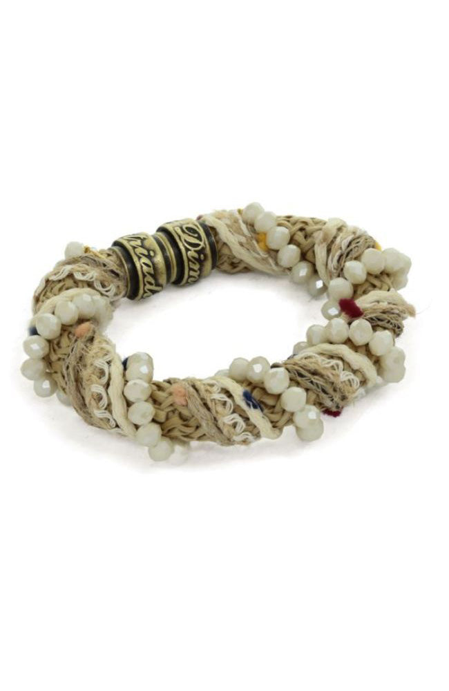 Art Wear Dimitriadis Tan Cream Bead Thread Bracelet