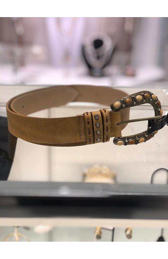 Streets Ahead Tan Belt Brown Beaded Buckle