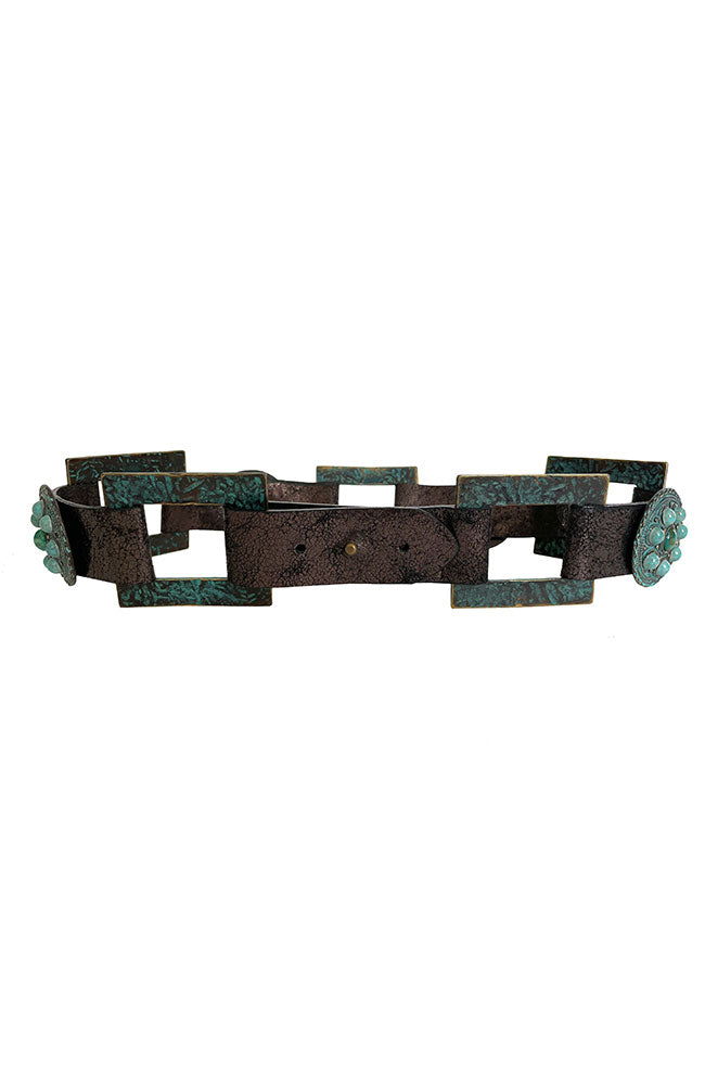 Streets Ahead Tan Belt with Metal Turquoise Details