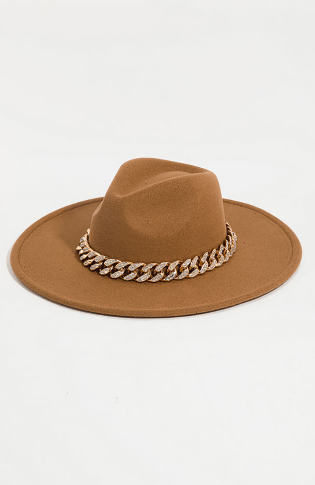 Fame Accessories Tan Hat Large Rhinestone Chain Trim