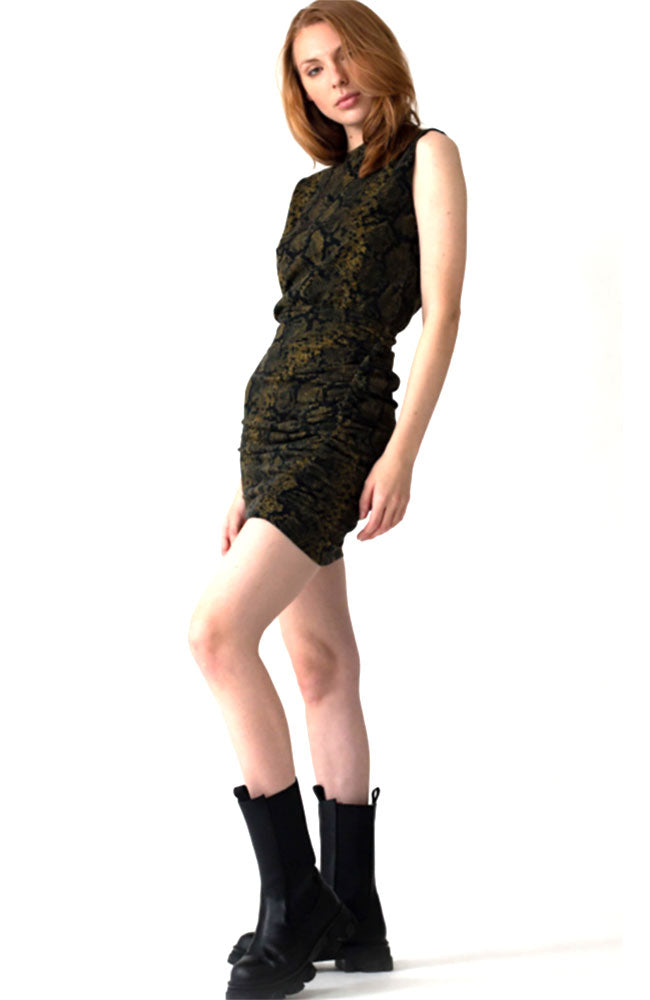 Pam & Gela Viper Muscle Sleeve Shirred Dress