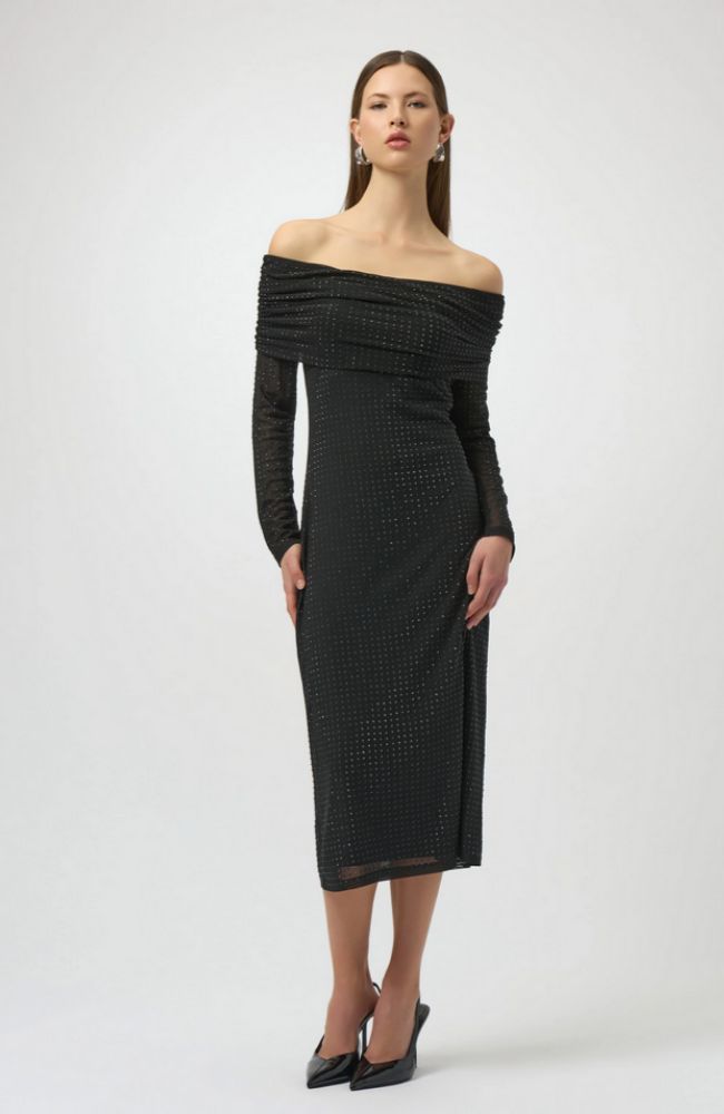 Joseph Ribkoff Rhinestone Mesh OTS Midi Dress