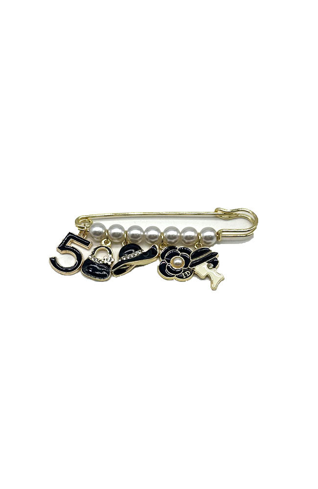 Rodeo Drive Large Gold Safety Pin Black Charms