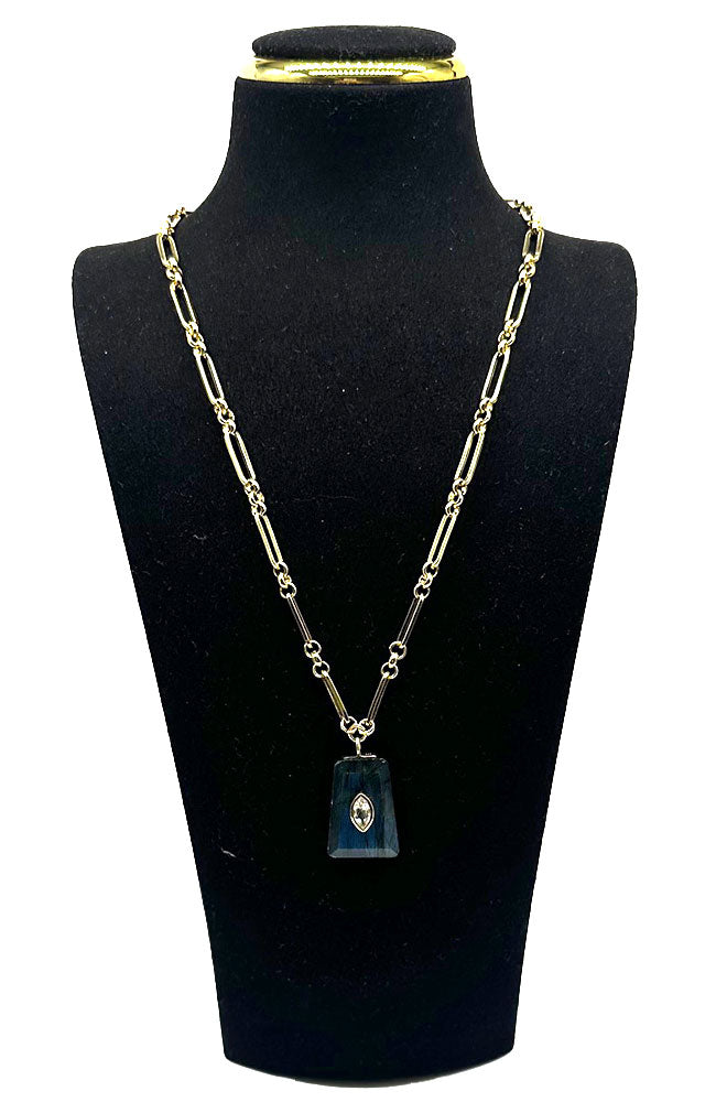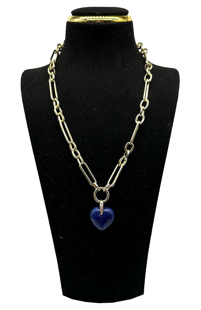 Janis Savitt Gold Lapis CZ Heart Necklace
