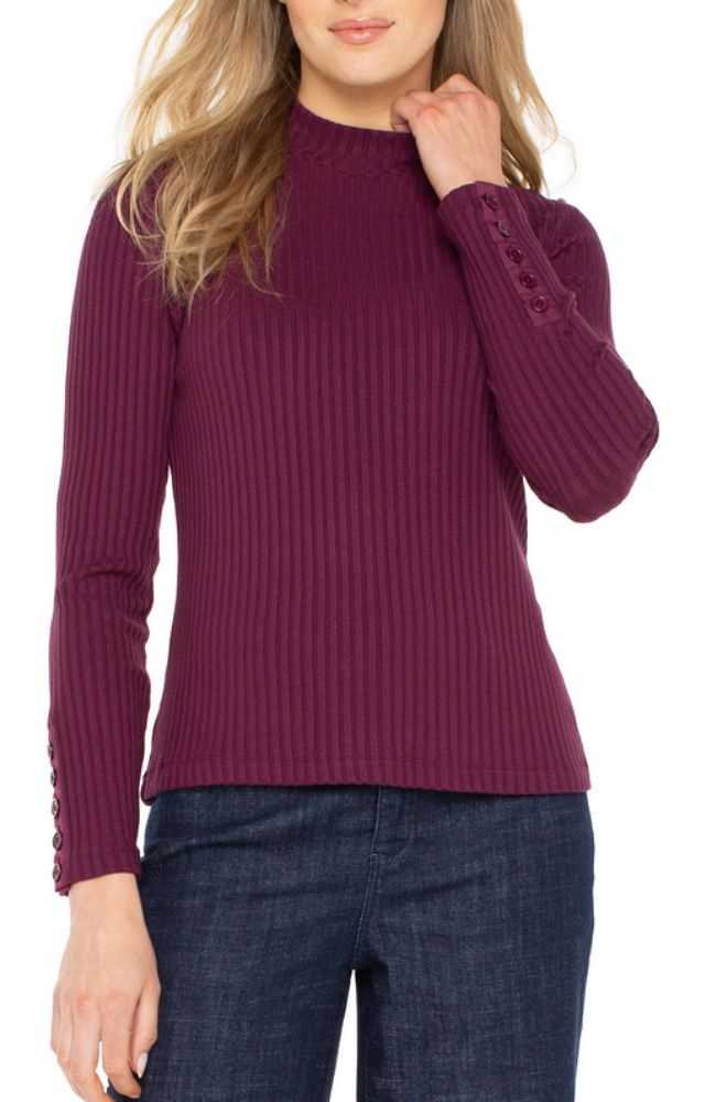 Liverpool Los Angeles Long Sleeve Mock Neck Top with Button Detail