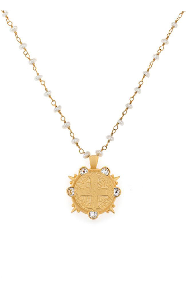 This necklace features Micro Freshwater Pearls, our exclusive Marmonde bezel and your choice of medallion. Totally stunning all by itself and even better when paired with another one of our designs.