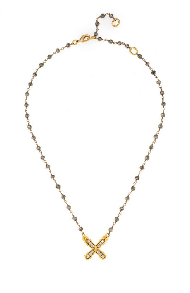 This necklace features Micro Pyrite with our Petite Austrian Crystal French Kiss pendant. Totally stunning all by itself and even better when paired with another one of our designs.