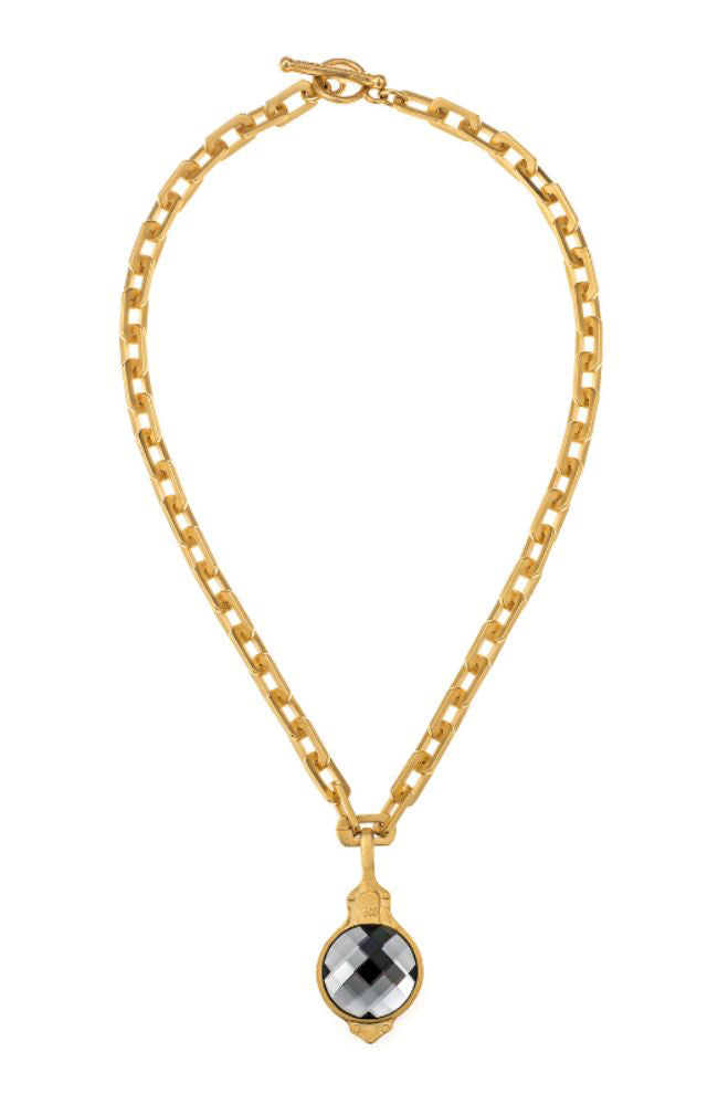 This necklace features 17” Honfleur chain with our exclusive Dunkerque bezel and Black Diamond Euro Crystal. Absolutely beautiful all by itself or layered with our other designs.