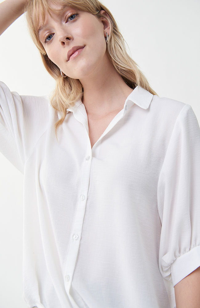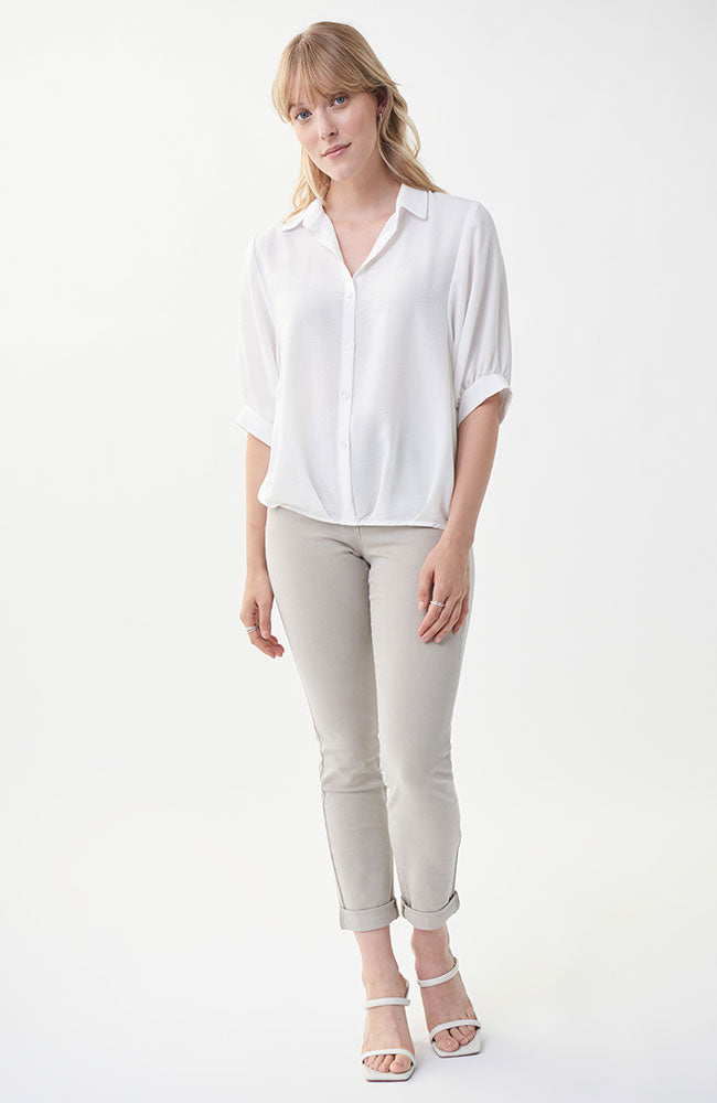 3/4 Sleeve Gathered Waist Blouse in White