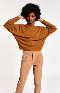 Loose-fit finely knitted turtleneck sweater is spun from a soft merino wool blend thread and is classically detailed with ribbed trims.