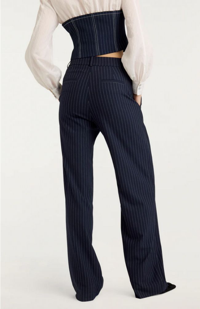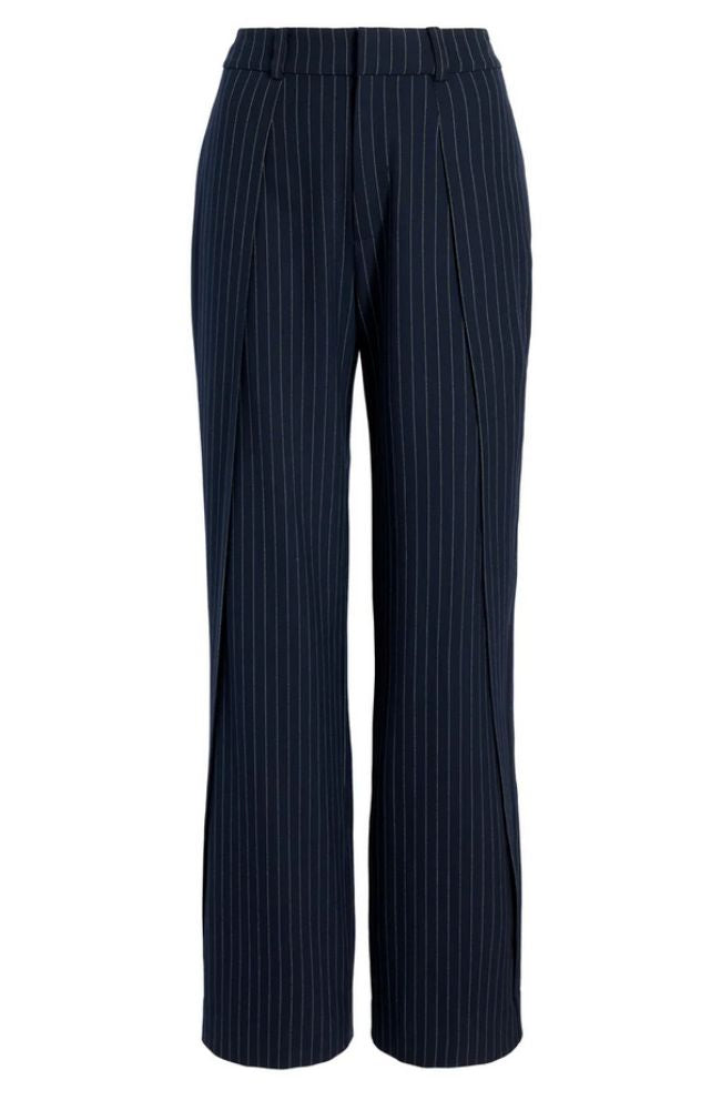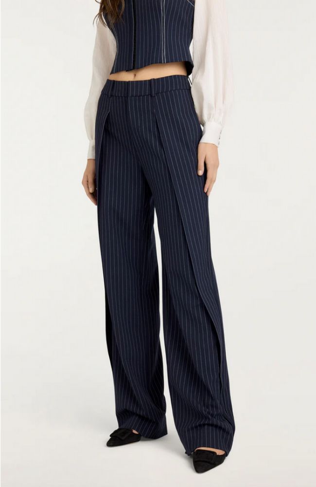 Introducing the ultimate wardrobe staple - the Becca Pant! Made from classic pinstripe twill, these trousers feature pleated detailing and a wide leg for a flattering and stylish look. Perfect for any occasion, these pants are a must-have for your wardrobe.