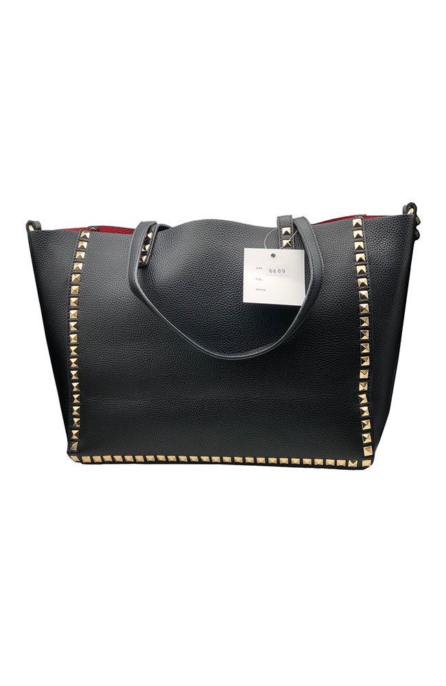 Black Studded Tote Red Inside
