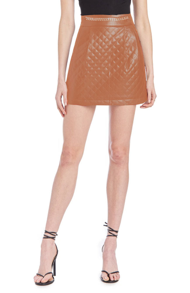 Made from Quilted Stretch Leather, the Callum Skirt is the perfect mini skirt for weekend activities. With silver chain details, this isn't your basic leather skirt. Wear with our matching Frankie Bomber Jacket.