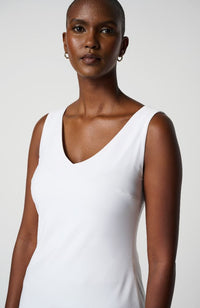 This sleek camisole features a silky knit and alluring V-neckline at both the front and back of this garment. Styled in a shoulder-baring silhouette with a double-layered front. A chic basic that's definitively a wardrobe staple.