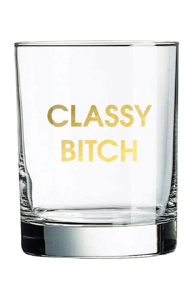 Crush your cocktail in style with our "Classy Bitch" gold foil rocks glass. Rocks glasses are printed in Los Angeles.