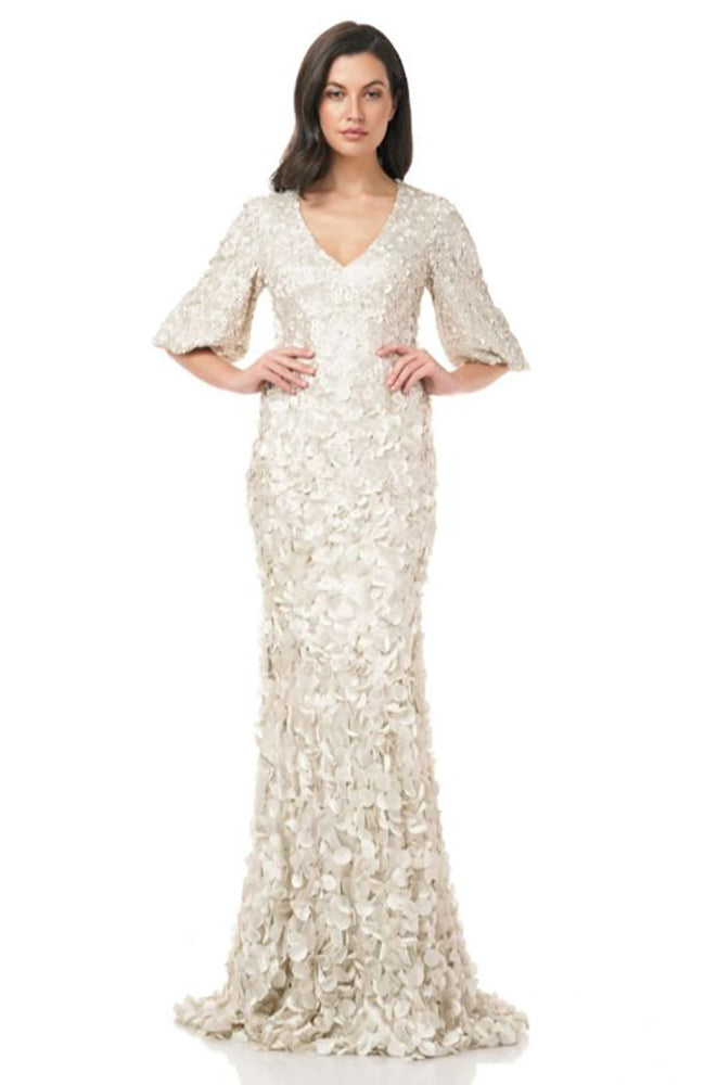The THEIA collection combines sophisticated and elegant styling with luxurious silks, European brocades, laces, and prints. THEIA's exquisite beading and embroideries are created by some of the finest couture studios in the world.