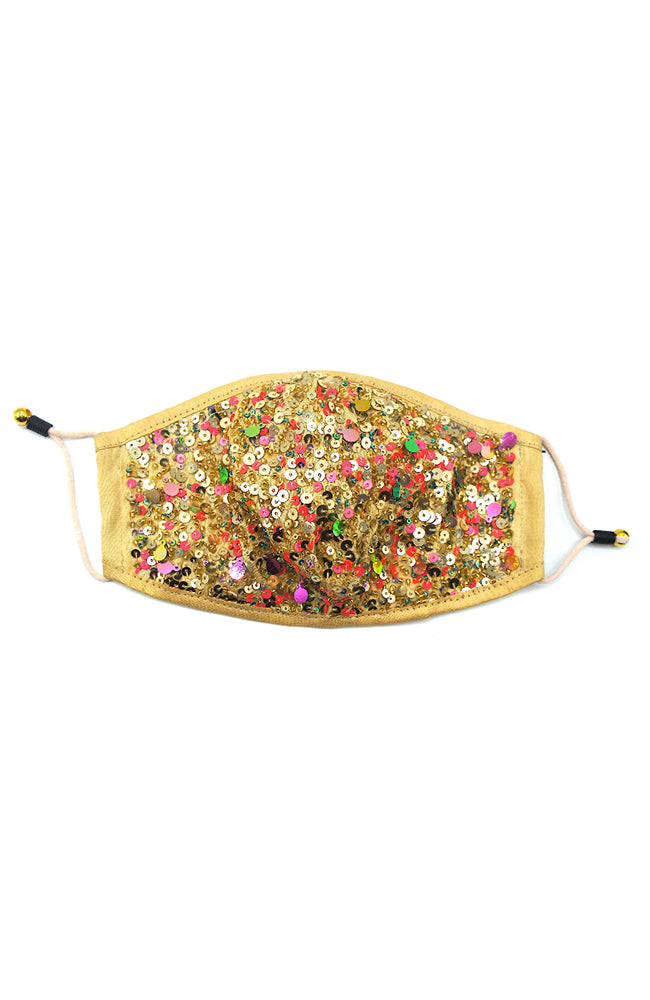 Look your bright and shimmering best with Simitri's hand embroidered mask with sequin & bead embellishments on a silk blend fabric. This mask has a two-layer design, soft lining & adjustable cotton ear straps.