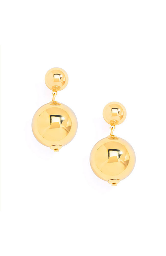 Drop earring with a 12mm 18K gold-plated metal bead.