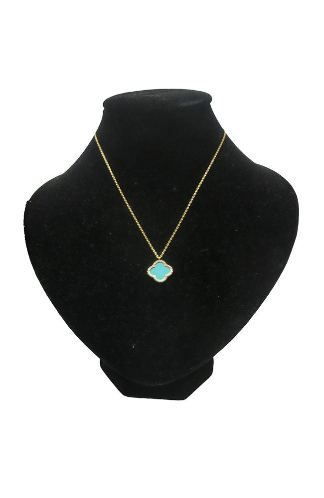 Gold Turquoise Clover Charm Necklace