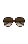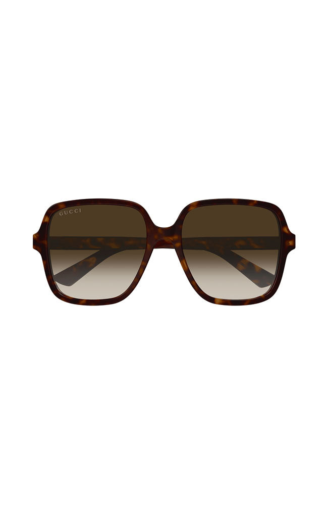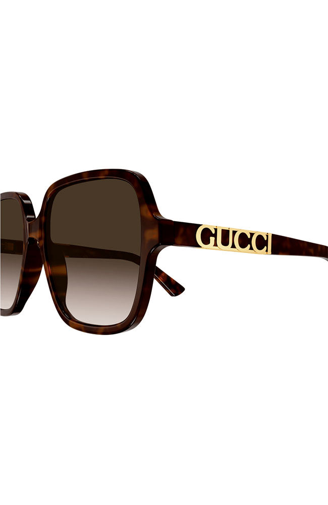 First launched in FW21 Fashion Show Aria, we continue to capitalize on the new Gucci script logo in bold gold letters. This oversize square shape is easy-to-wear, in full acetate with oversized contours and characterized by an evolution of the script logo with a new design. Here the logo is obtained from a gold plaque carefully inserted into both acetate temples.