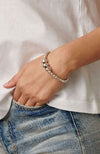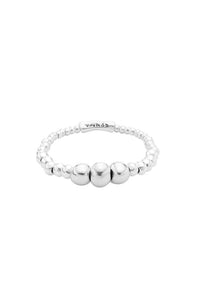 Original elastic bracelet comprised of multiple silver-plated pearl-shaped beads, one that you can wear for all kinds of occasions. This piece sports a natural look and versatile styling, adorned with three round pieces larger than the rest, and is handcrafted in Spain by UNOde50 using 100% artisanal methods. 6.18 inch
