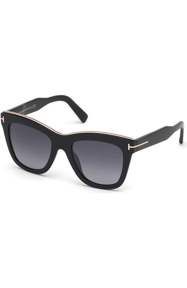 Soft squared acetate shape. The style is characterized by a metal top bar on the front and metal T logo decoration.