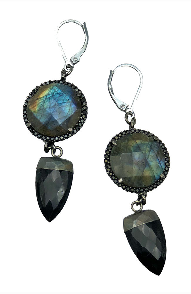 Lab Black CZ Bezel & Onyx Earring