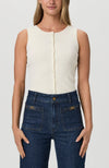 Crafted from a nylon yarn blend with an elevated feel, this slim antique white sweater tank has a pleated effect with a crew neckline and a button front design. Leira is the perfect layering piece to add to your year-round wardrobe.