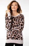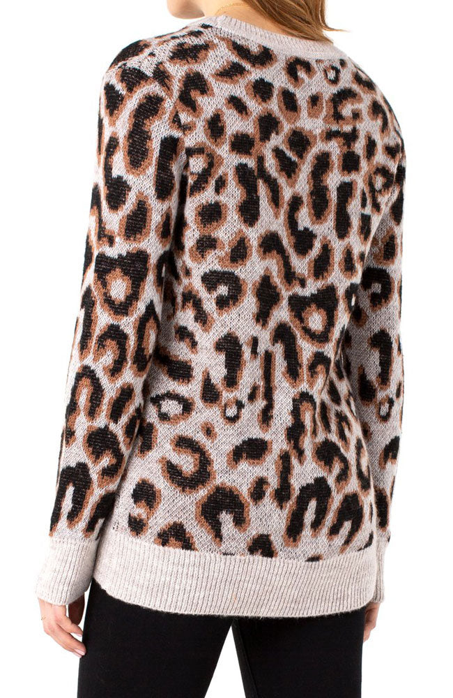 Cozy Chic! This fabulous sweater comes alive in this Leopard print detail. A sweater perfect for layering or on its own, this style pairs back to denim effortlessly.