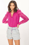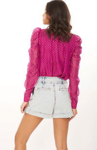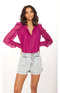 Lou Metallic Square Puffy Long Sleeve Blouse