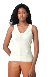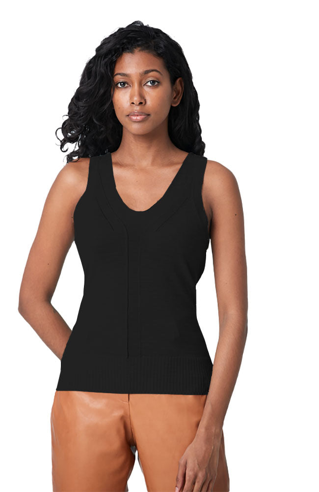 This soft merino wool knit is perfect under a blazer or a coat. Breezy and comfortable for your everyday underpinning. This sleeveless scoop neck top in a knitted feel is a basic you need in your wardrobe.