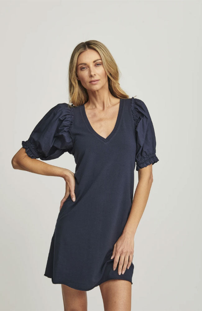 Meet Mila, the latest update to the t-shirt dress. Mila is made in our signature lux wash french terry and is butter soft. The sleeves are made in cotton poplin for a structured puff sleeve fit.