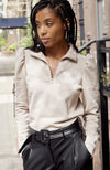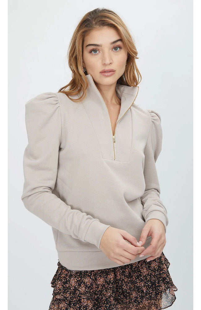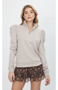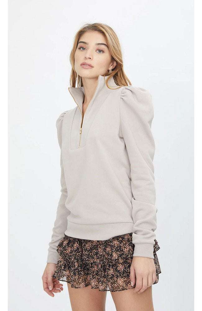 In a beautiful, rich taupe color, the Nariah Zip Sweatshirt is an elevated take on everyday loungewear. This mock-neck, half-zip sweatshirt is accented with a luxe pale gold zipper. Its oversized fit and ultra-soft feel make this a casual piece to live in. Finished with ribbed cuff detailing and the signature Generation Love sleeve.
