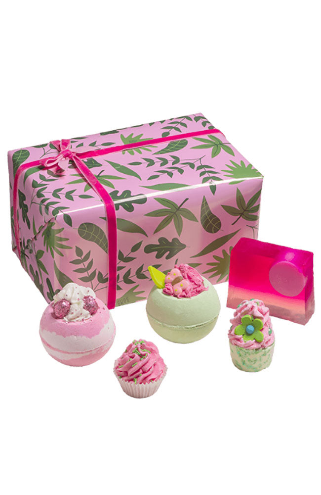 Pamper yourself pretty at Palm Springs with pure essential oils & absorb the sunshine to soothe your soul! This gift pack contains one of each of the following: All That Glitters Bath Blaster 160g / 5.5oz Flutter By Butterfly Bath Blaster 160g/5.5oz Summer Cherry Soap 100g/3.5oz Apple & Raspberry Bath Mallow 50g /1.7oz Superfruiter Buttercup 30g/1oz
