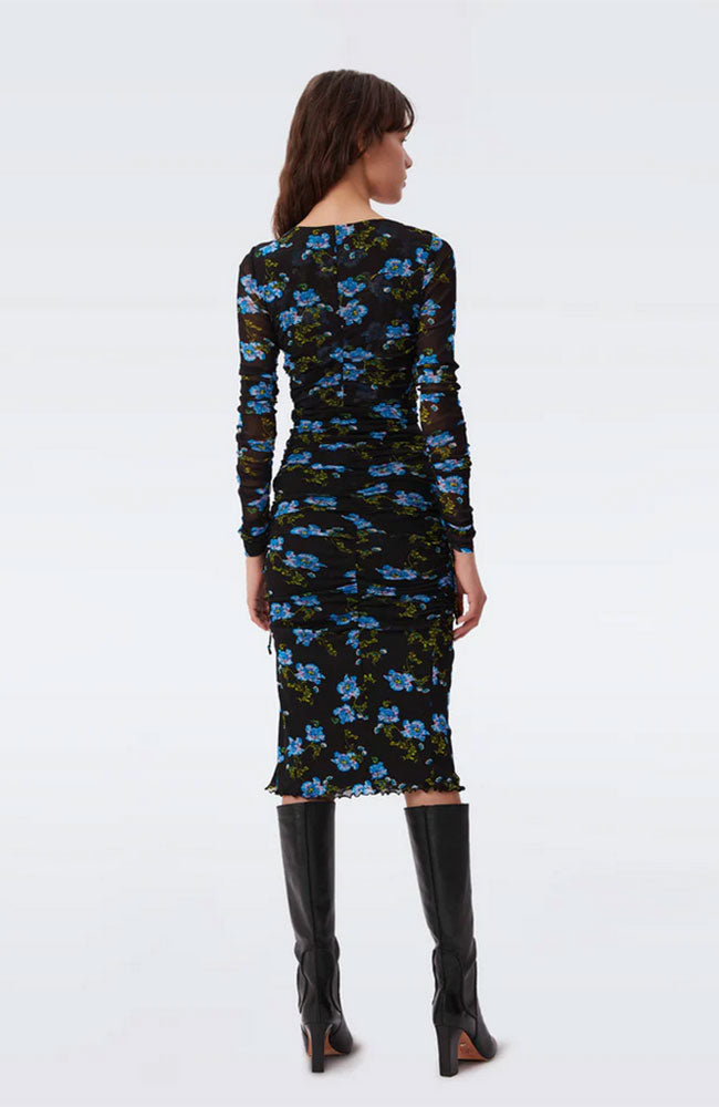 Highlight your figure with the Rochelle's body-hugging mesh composition. Ruched in all the right places, this midi dress has long sleeves and a V-neckline. Pro tip: bring it on your next trip since it flattens easily and is wrinkle-free.