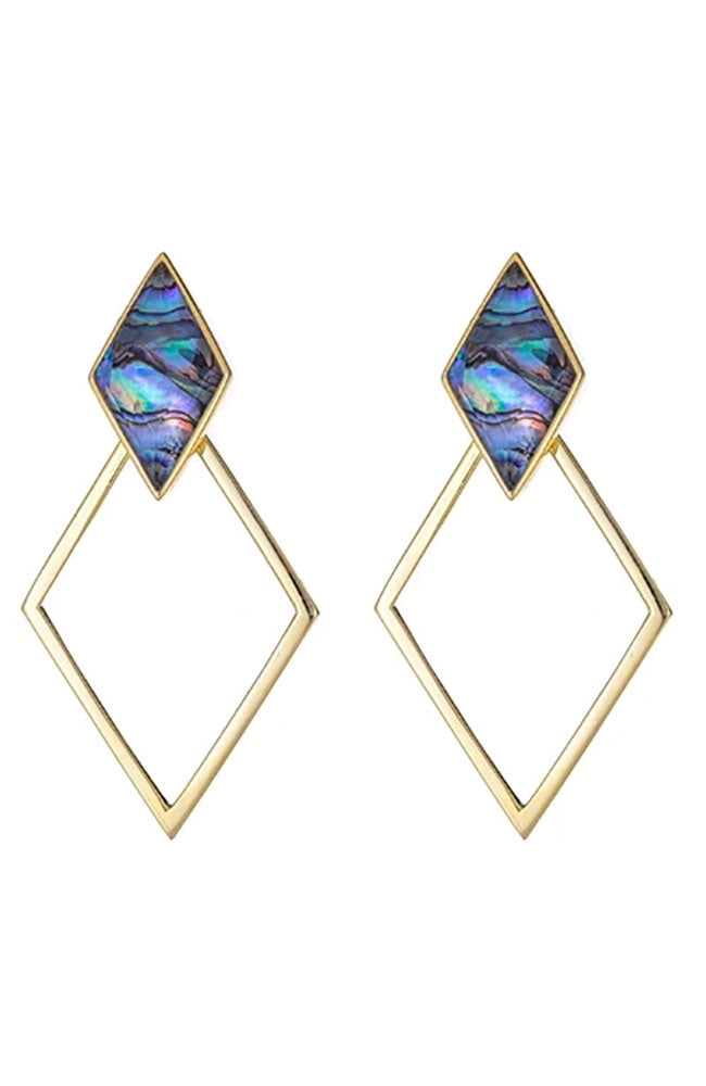 These diamond-shaped earrings are extremely lightweight and embellished with an accent of Mother of Pearl and Abalone.