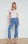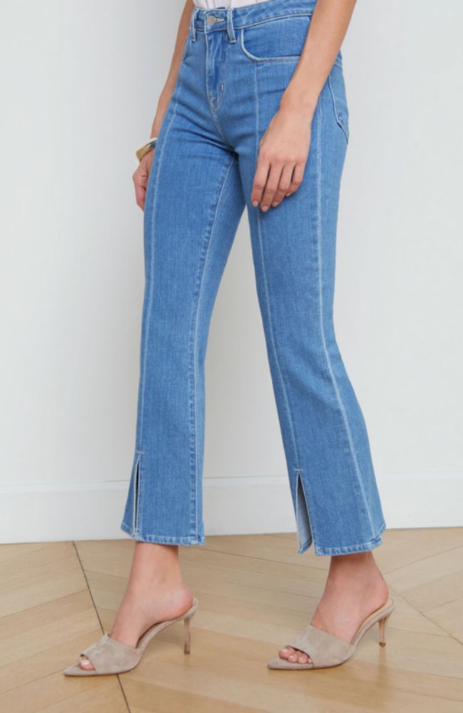 Say hello to our newest jean—sleek, sexy, and perfect for summer. In a wear-all-day stretch denim, Rue hugs from contoured waistband to knee before releasing into a cropped baby bootcut hem that balances the silhouette. Center-front seaming and hem slit add a modern element. Four-pocket construction keeps the look clean. Wear it with all your favorite blouses for the ultimate day-to-night look.